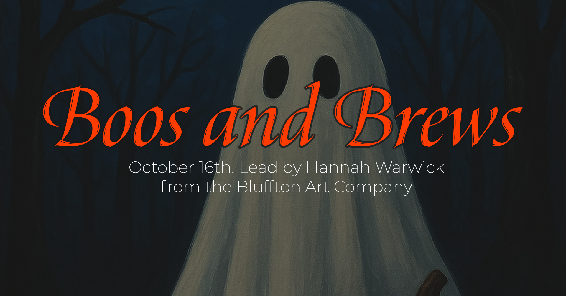 Join us for a spooktacular evening of painting, pints, and plenty of fun! At Boos and Brews, Lead by Hannah Warwick from the Bluffton Art Company, you’ll create your very own ghostly masterpiece featuring a whimsical ghost, glowing jack-o-lantern, a watchful crow, and a full moon shining through the woods! Each ticket comes with 1 FBC beer!